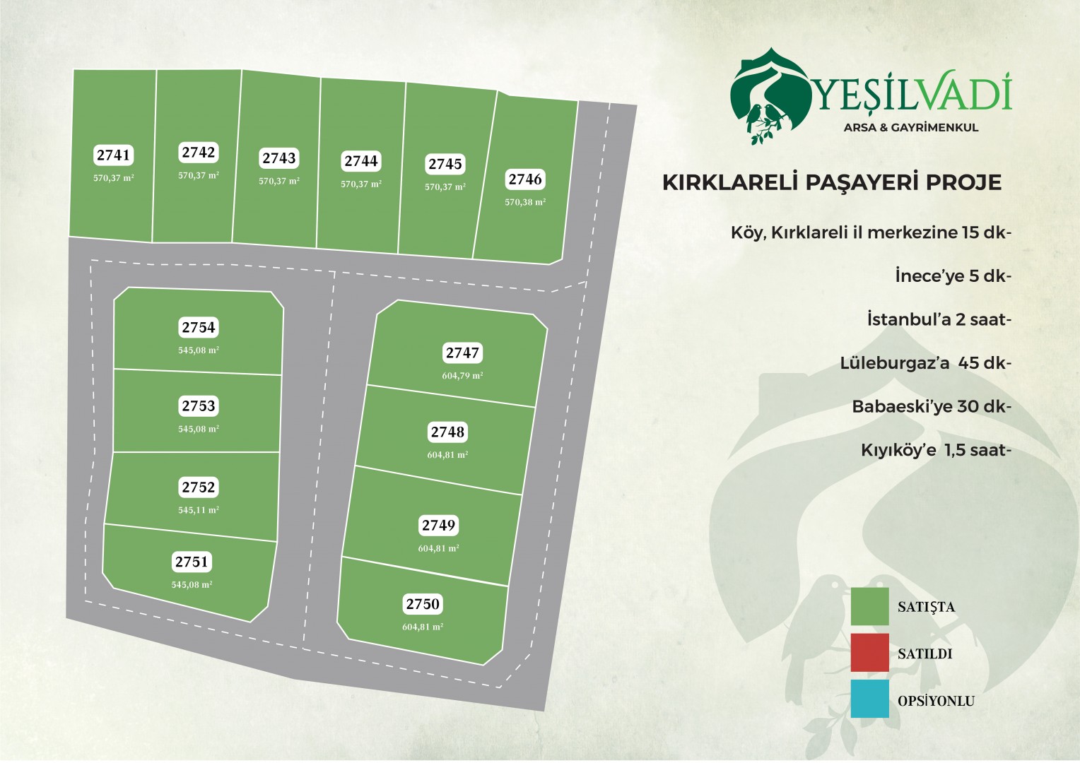 Kırklareli İnece Paşayeri’nde konumlanan İnece Paşayeri Arsa Projesi, doğayla iç içe huzurlu bir yaşam ve güçlü bir yatırım fırsatı sunuyor. Deprem riskinin en düşük olduğu bölgelerden birinde yer alan proje, sakin köy atmosferi ve temiz havasıyla dikkat çekiyor. Doğal güzelliklerle çevrili bu özel lokasyonda, hem kendi köy evinizi inşa edebilir hem de geleceğe değer kazanan bir yatırım yapabilirsiniz. Yeşil Vadi Arsa & Gayrimenkul güvencesiyle doğanın kalbinde yeni bir başlangıç sizi bekliyor. 🌿🏡