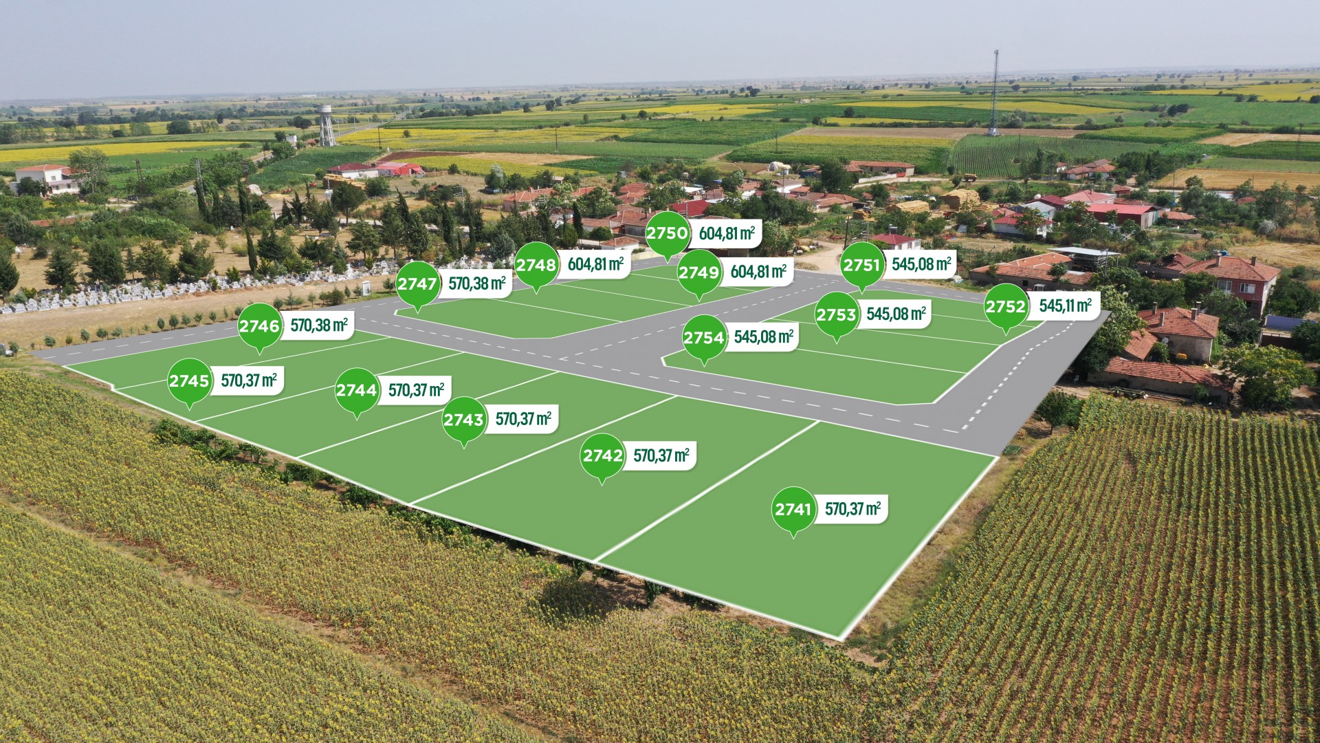 - 570 m2 ile 650 m2 arasında arsalar