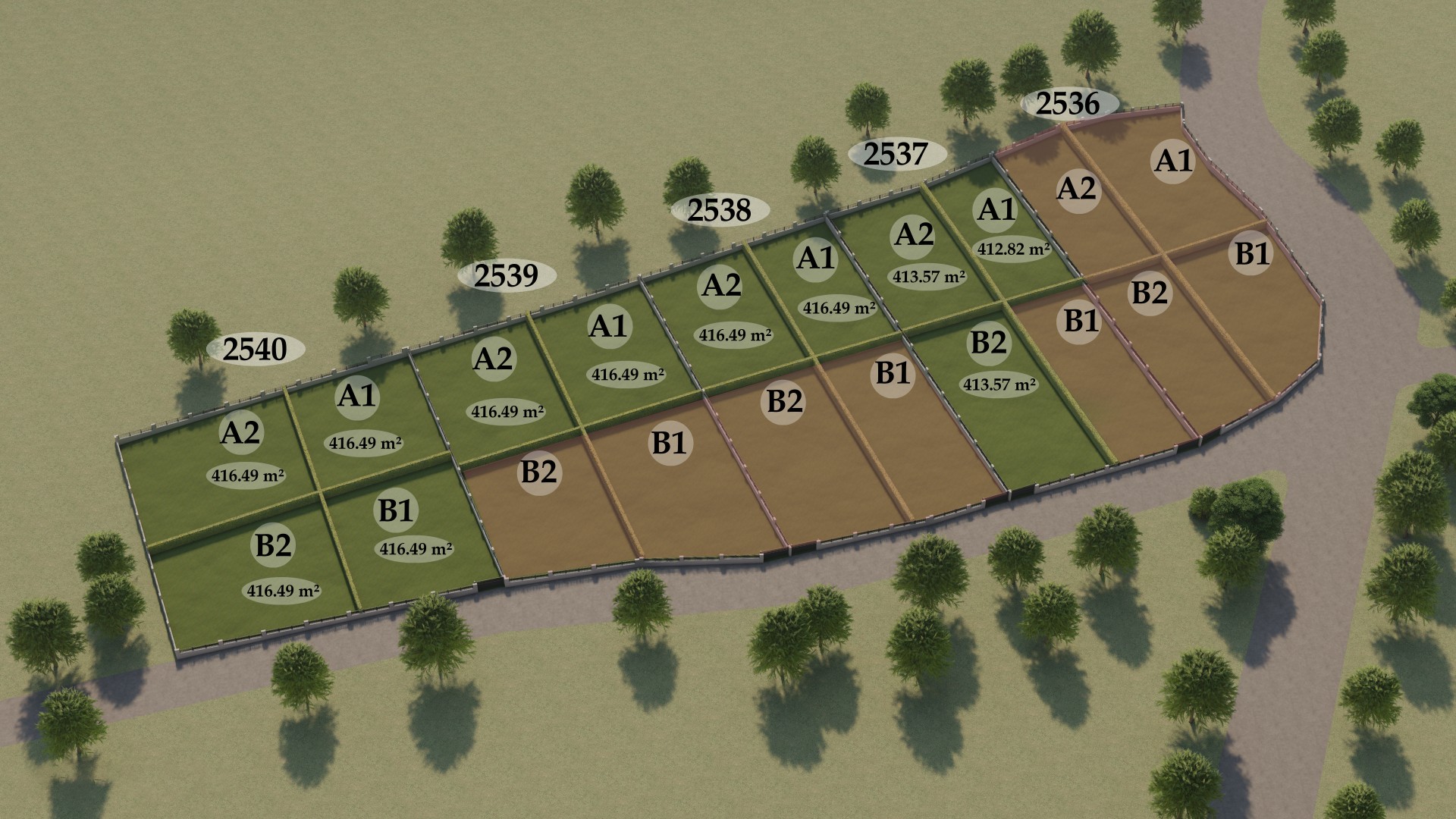 - Arsa Büyüklüğü: 412 m² ile 416 m² arasında değişen 11 adet arsa