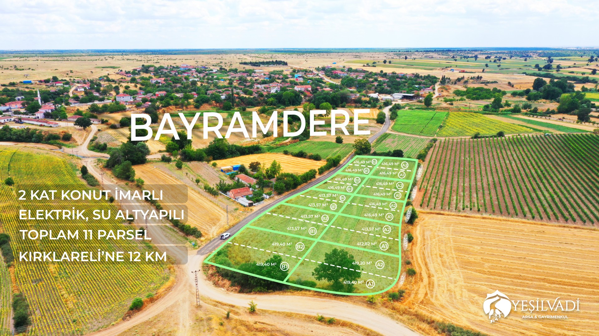 Kırklareli Merkez’e bağlı Bayramdere Köyü’nde konumlanan Bayramdere Arsa Projesi, doğayla iç içe müstakil bir yaşam hayal edenler için özel olarak planlanmıştır. 412 – 416 m² büyüklüğündeki 2 kat konut imarlı arsalar, dubleks mesken tapulu yapısıyla 3+1 villa inşa etmeye uygun olarak sunulmaktadır. Elektrik ve su altyapısı hazır olan proje, Kırklareli merkeze yakın konumu sayesinde hem huzurlu bir yaşam hem de güçlü bir yatırım fırsatı sağlar. Yeşil Vadi Arsa & Gayrimenkul güvencesiyle doğanın içinde değer kazanan bir geleceğe adım atın. 🌿🏡