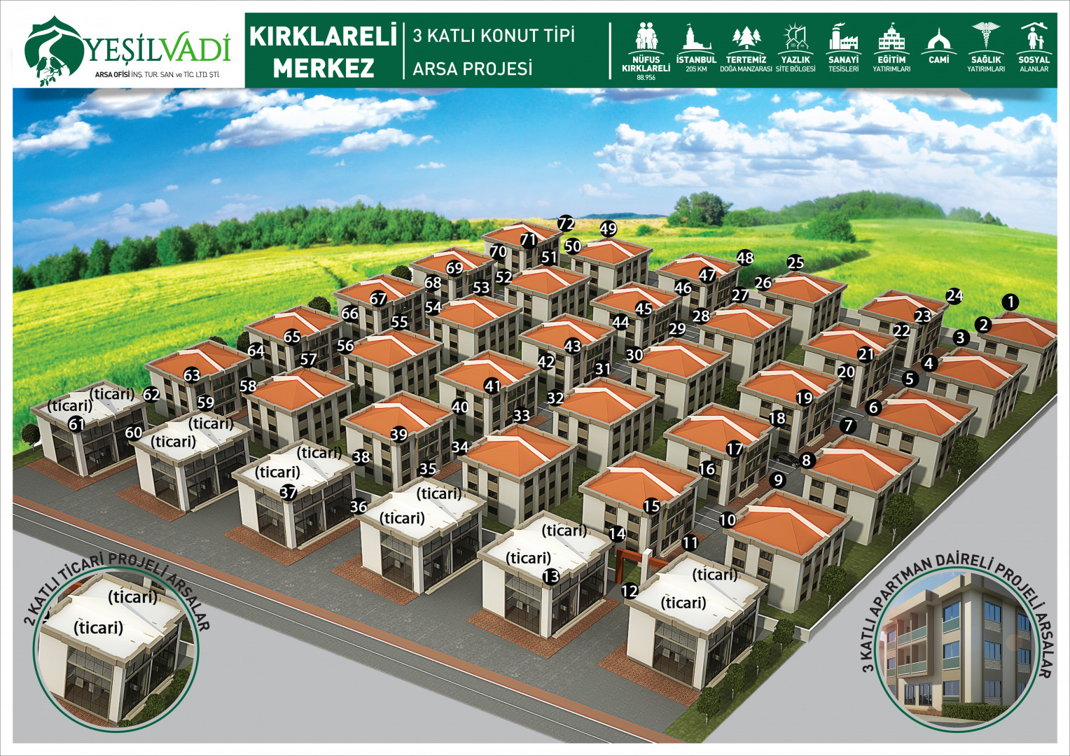- Toplam 72 Blok Yapımına Uygun Arsa