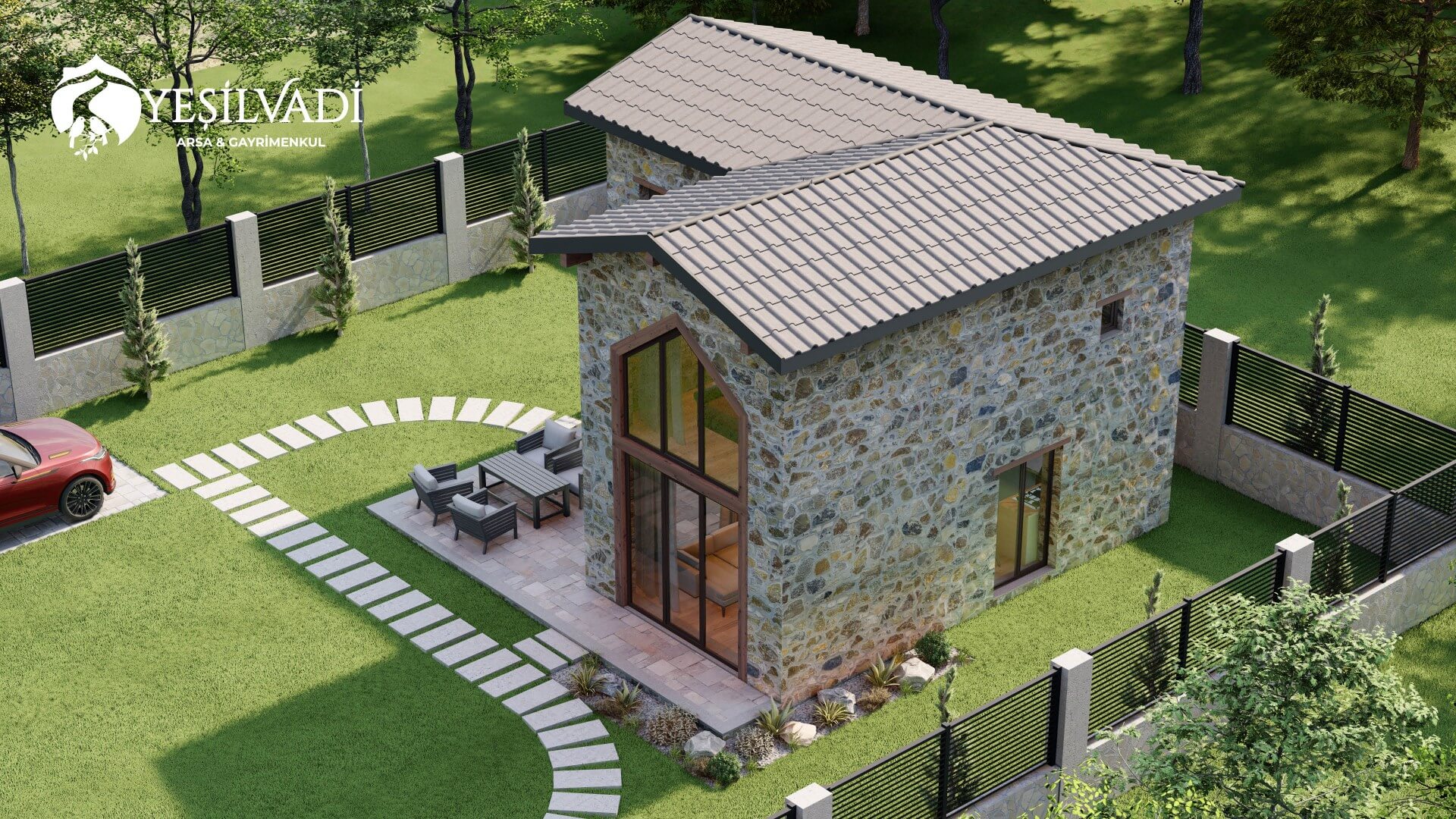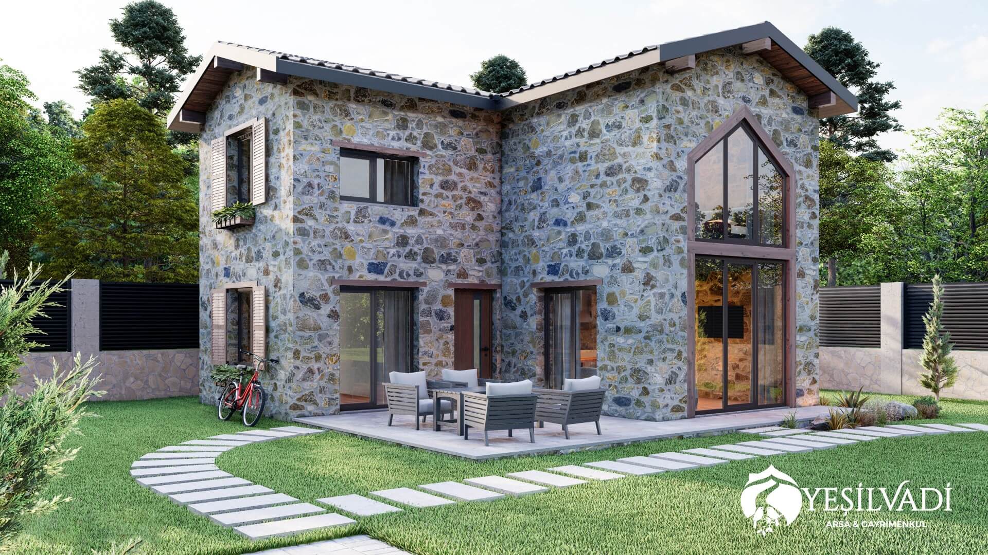 - Her biri 250 m2 ile 450 m2 arsa payı içerisinde 3+1 taş evler